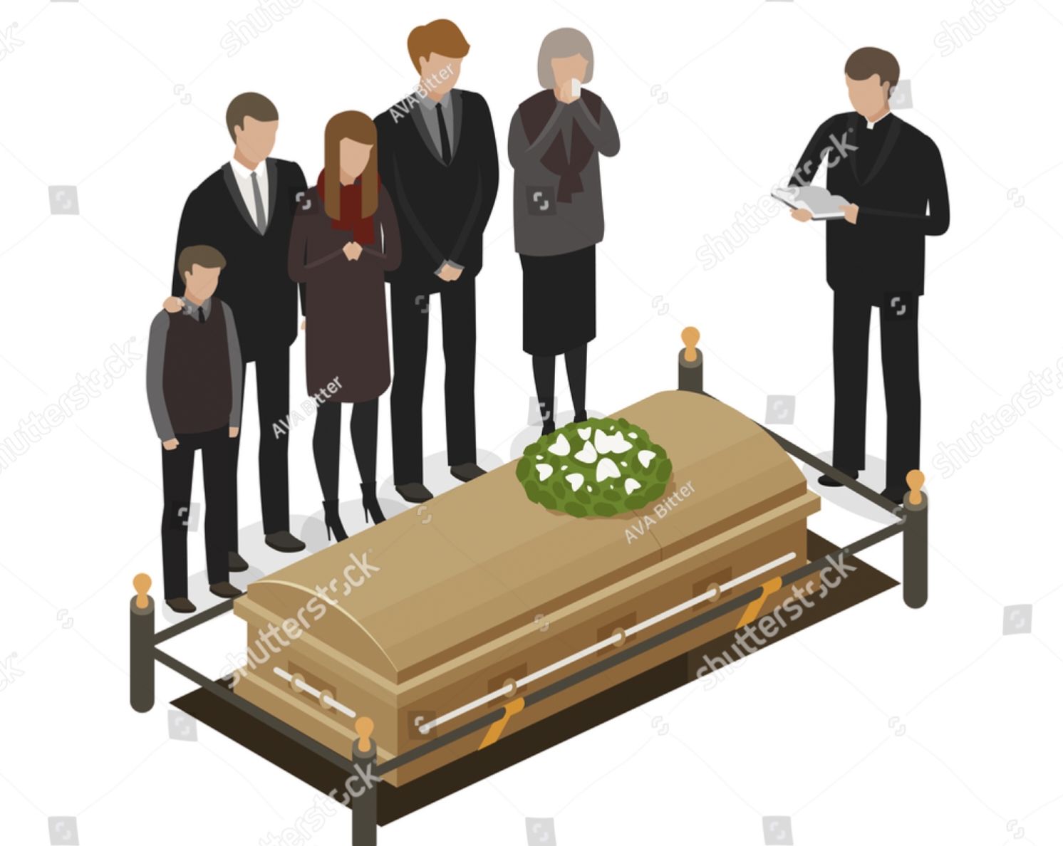 Setelah memberikan beberapa sambutan, para keluarga dan kerabat memosisikan diri dalam keadaan tenang dan penuh khidmat. Masing-masing menyadari pentingnya kehadiran mereka untuk mendukung dan memeriahkan suasana berkabung. Tak berapa lama, muncullah pendeta, yang kemudian disambut oleh isak-tangis janda mendiang. Lampu-lampu kecil di latar belakang tampak mulai meredup. Ratapan wanita itu memenuhi ruangan. Sang pendeta menenangkan sambil mendekati peti mati, sejenak merebahkan wajahnya pada kaca yang dingin.