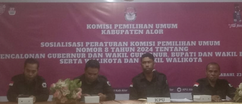 RADARNTT, Kalabahi – Komisi Pemilihan Umum (KPU) Alor melakukan sosialisasi PKPU nomor 8 tahun 2024 tentang Pencalonan Gubernur dan Wakil Gubernur, Bupati dan Wakil Bupati serta Walikota dan Wakil Walikota.
