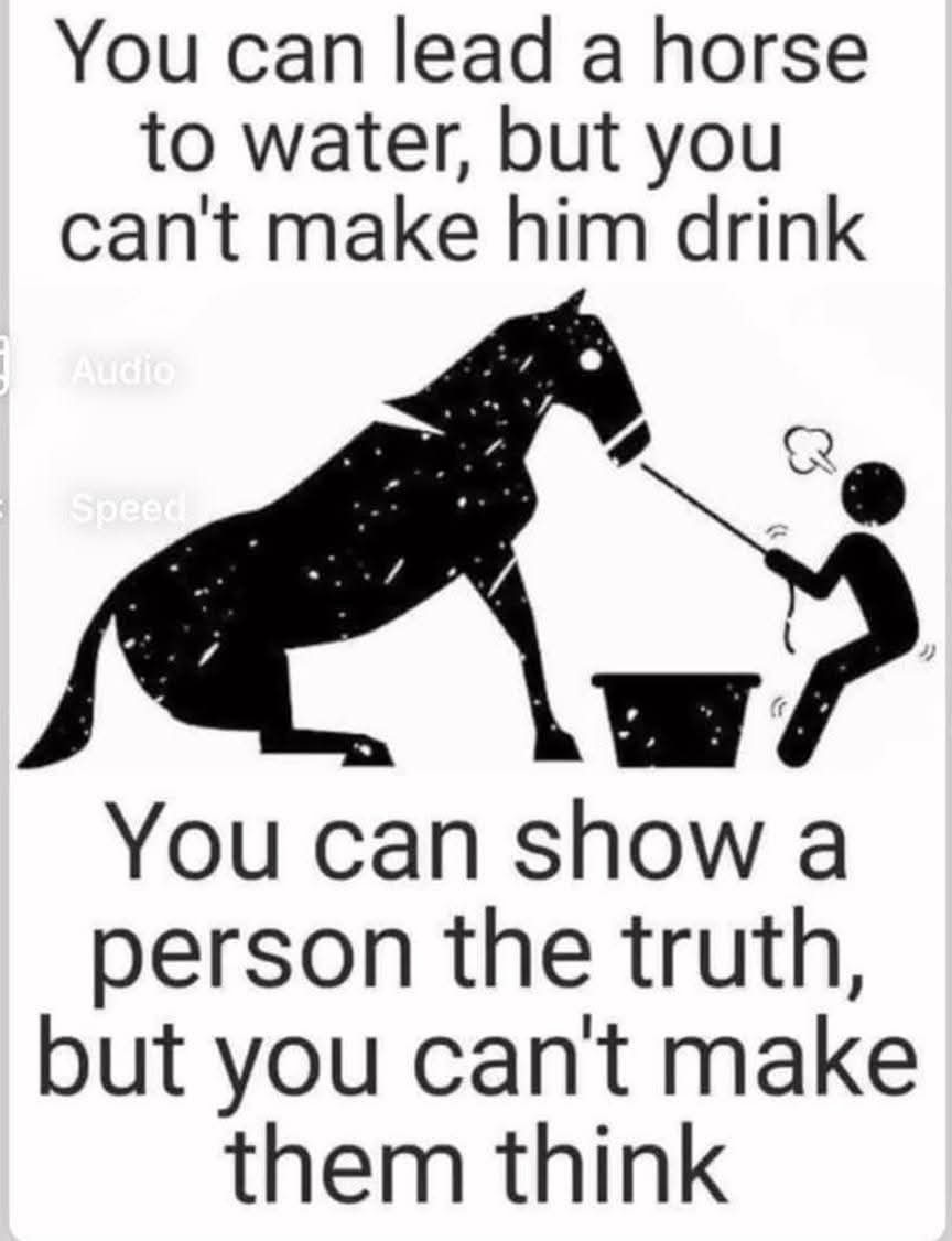 You can lead a horse to water, but you can’t make him drink. You can show a person the truth, but you can’t make them think.”