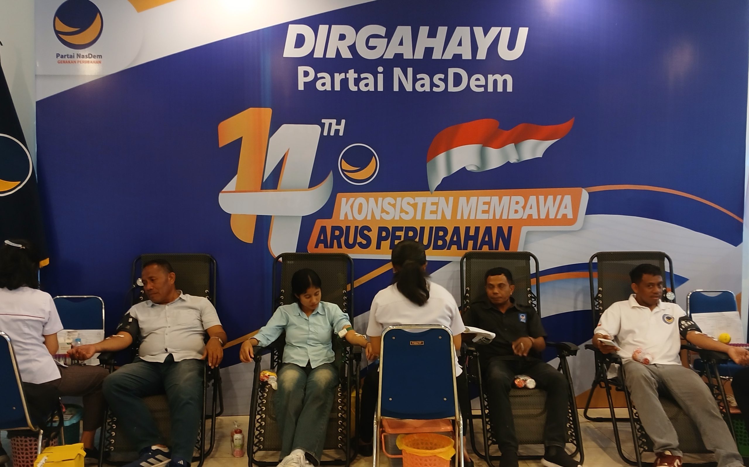 Ketua Panitia HUT ke-14 Partai NasDem DPW NTT, Wilhelmus Widung Making menyampaikan bahwa jumlah orang mendonorkan darah dan cek kesehatan gratis tidak mencapai target masing-masing 100 orang karena beberapa kendala teknis yaitu ada orang setelah diskrining HB rendah dan tensi tinggi sehingga tidak diizinkan donor darah.