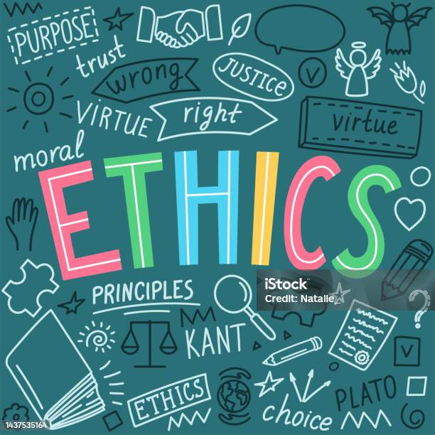 Ethics. Moral hand drawn doodles and lettering. Education vector illustration.