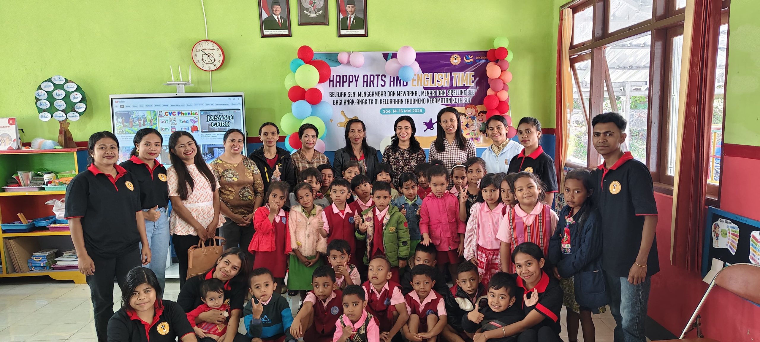 Koordinator Tim KKNT, Sonya Benu mengungkapkan PKM bertema ‘Happy Arts and English Time: Belajar Seni Menggambar dan Mewarnai, Menari dan Spelling Bee bagi Anak-anak TK di Kelurahan Taubneno Kecamatan Kota Soe’ diikuti 35 peserta didik dari dua Satuan Pendidikan yaitu PAUD Bethania Soe dan TK Kristen Bethania Soe.