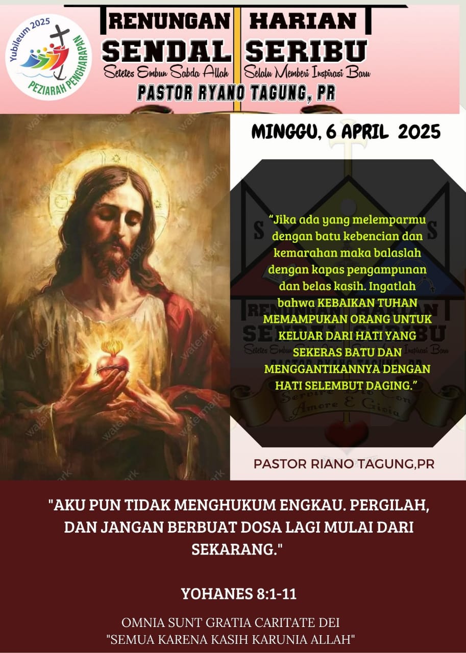 Marilah kita kembali ke dalam keluarga dan komunitas kita, marilah hidup dalam belas kasih Allah tanpa dendam, saling menjatuhkan, saling menghakimi, saling menuding, saling iri hati, saling cemburu, saling dendam. Undang Yesus masuk ke dalam rumah kita, ke dalam keluarga kita dan komunitas kita agar kita dapat merasakan belas kasihNya yang sungguh mencintai kita. Kita adalah pendosa yang sungguh dicintaiNya karena itu jangan takut untuk datang kepadaNya dan hiduplah dalam belas kasihNya.