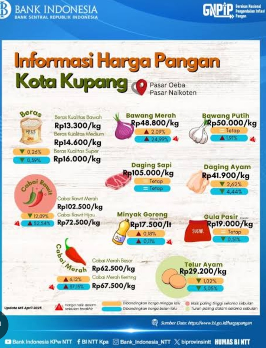Tahun 2025 meninggalkan jejak yang jelas bagi masyarakat Nusa Tenggara Timur (NTT): harga bahan pokok naik, sementara daya beli tidak sepenuhnya mampu mengejar. Kenaikan ini bukan sekadar cerita, melainkan realitas sehari-hari yang hadir di meja makan keluarga, kios kecil, pasar tradisional, dan dompet rumah tangga. Data Badan Pusat Statistik (BPS) Provinsi NTT mencatat inflasi tahun-ke-tahun (year-on-year) Desember 2025 sebesar 2,39 persen dengan Indeks Harga Konsumen berada pada angka 108,94. Secara teknis, angka ini masih berada dalam rentang sasaran inflasi nasional. Namun di lapangan, yang dirasakan masyarakat adalah naiknya harga beras, minyak goreng, gula, cabai, bawang, telur, daging ayam, dan kebutuhan pokok lain yang membentuk sebagian besar pengeluaran rumah tangga.
